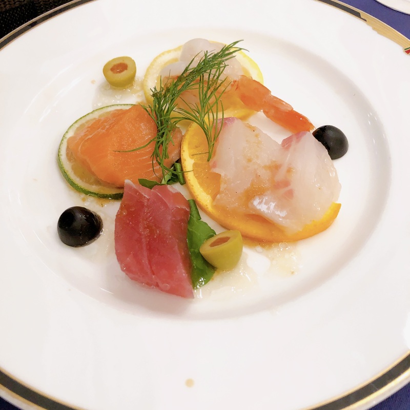 どのお料理もおいしかったですが特に魚介のカルパッチョがおいしかったです🐟