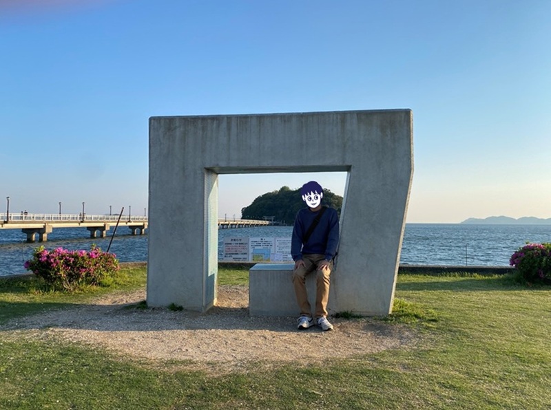 イルカさんのベンチアートにひきつづき、別のベンチアートを見つけたので記念撮影📷
