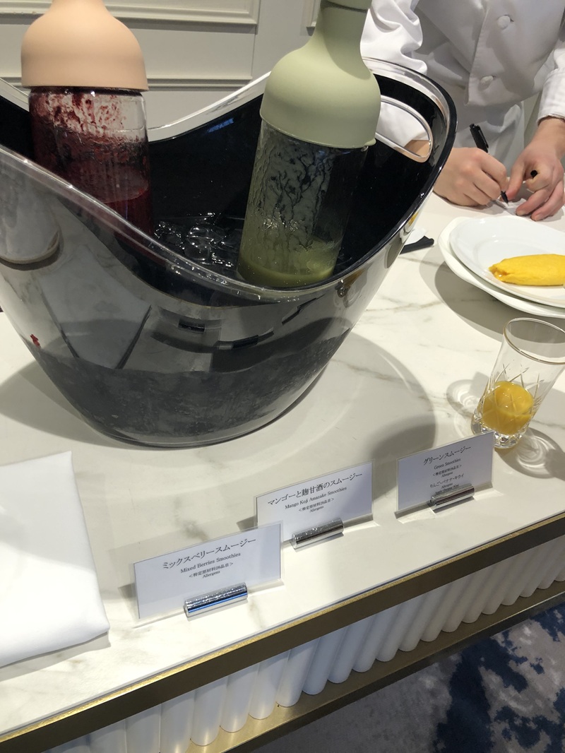 こちらでスムージーとオムレツをお願いするとお席まで持ってきてくださいます。