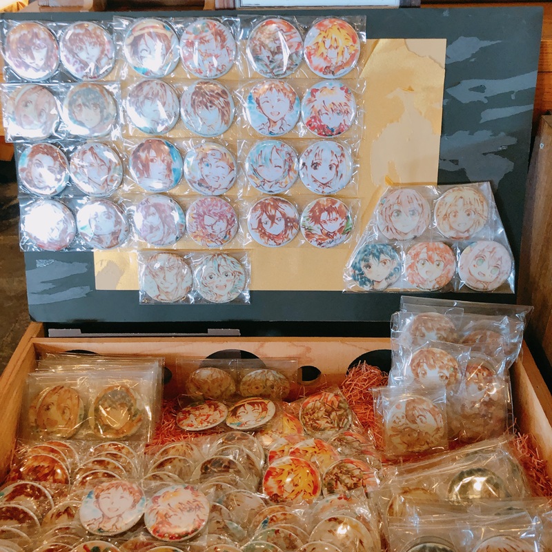 こちらのお店はラテアートも有名らしく、店内にはラテアート作品の缶バッチ?が。