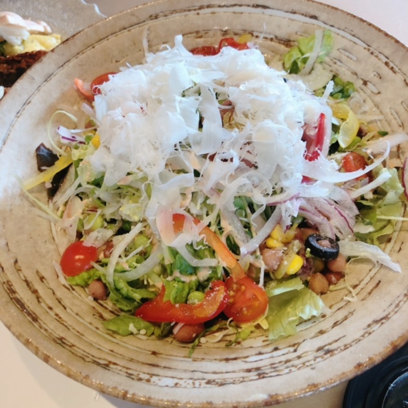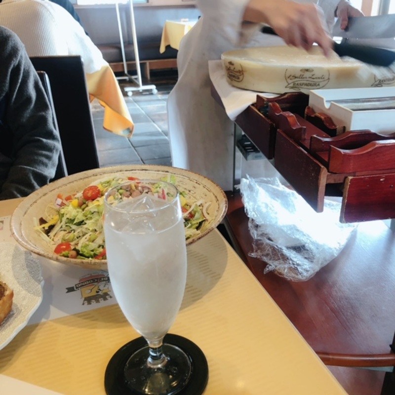 こちらのサラダは+300円でスタッフさんがその場で「ラスパドゥーラチーズ」というチーズを削って乗せてくれるオプションがあります♪